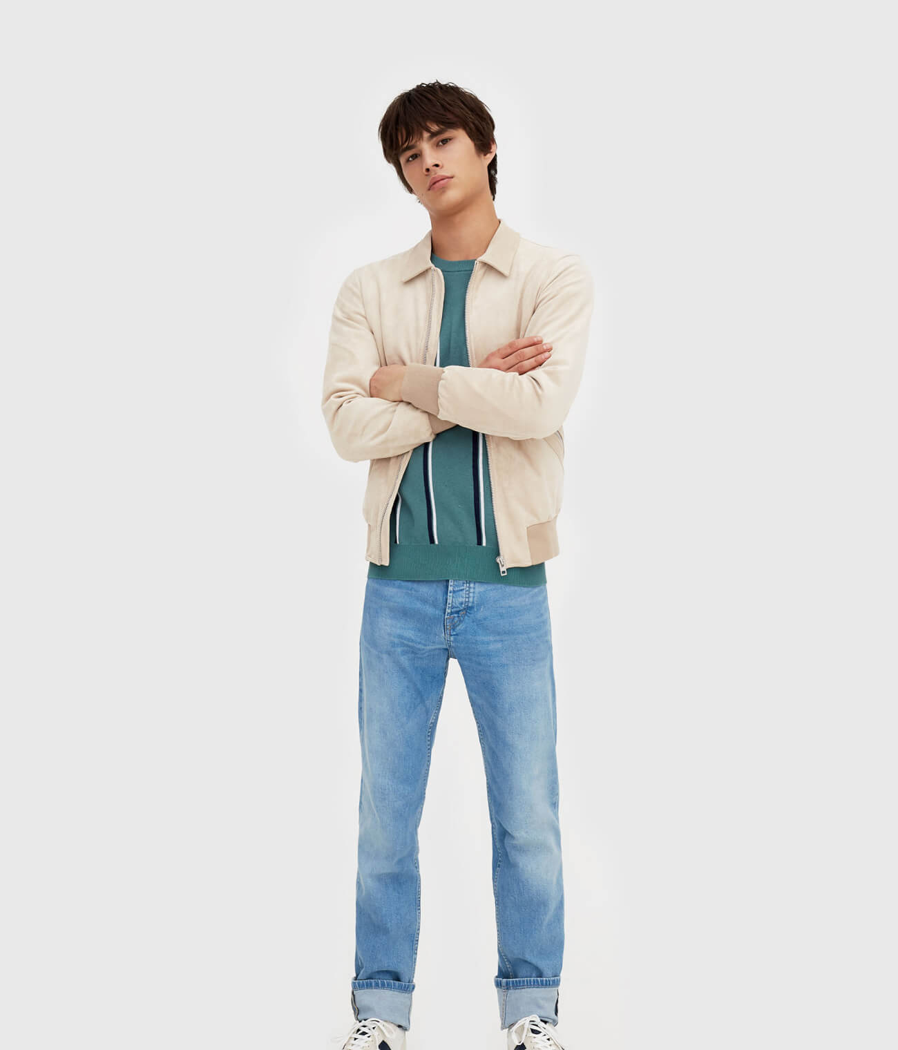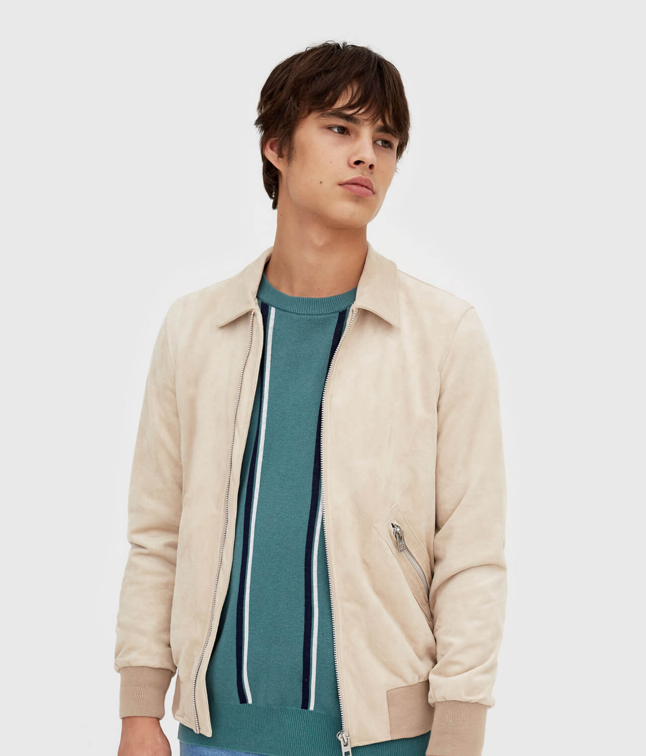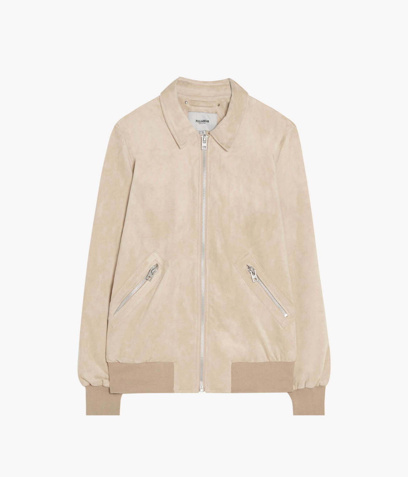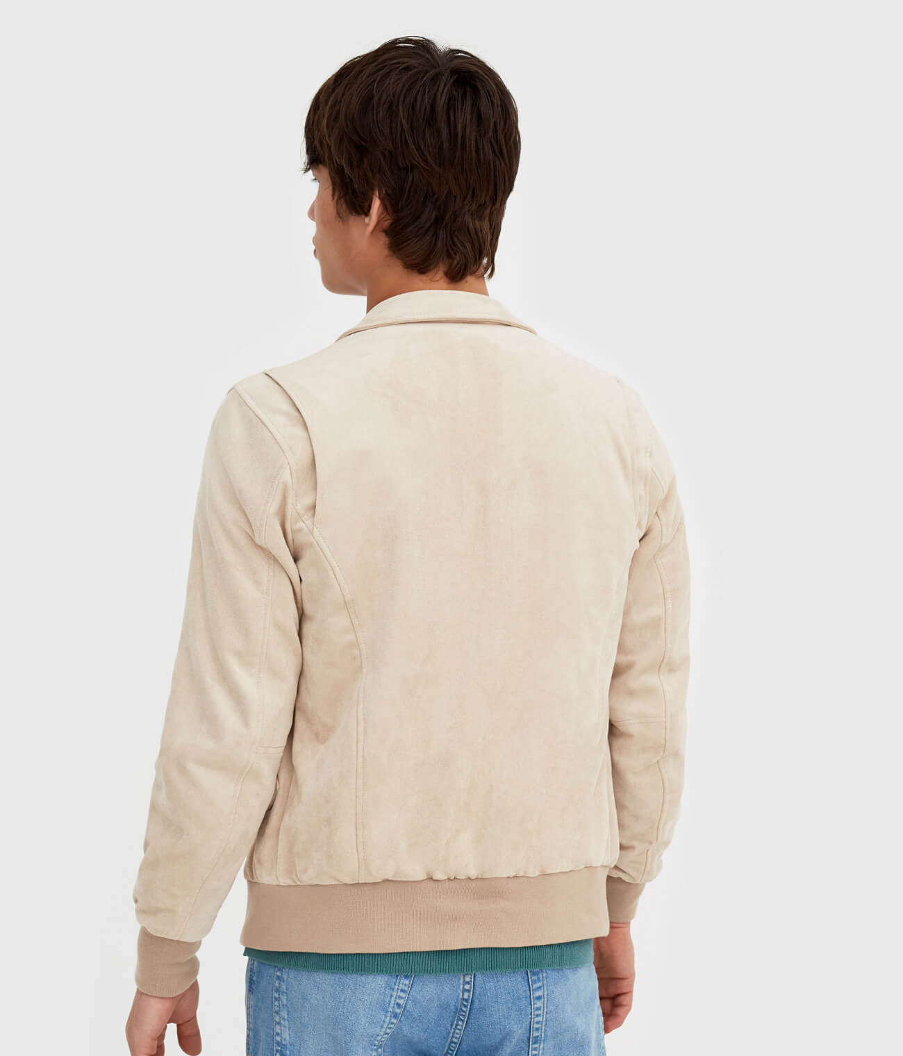Turn heads with the Men’s Beige Suede Bomber Jacket — a perfect blend of elegance and edge. Crafted from premium faux suede, this jacket offers a soft, luxurious feel with a structured silhouette. The zippered front and slant pockets bring both style and function, while the ribbed cuffs and hem ensure a snug fit. Ideal for layering over t-shirts or shirts, it’s the ultimate statement piece for casual evenings or stylish outings.