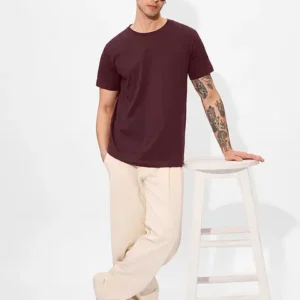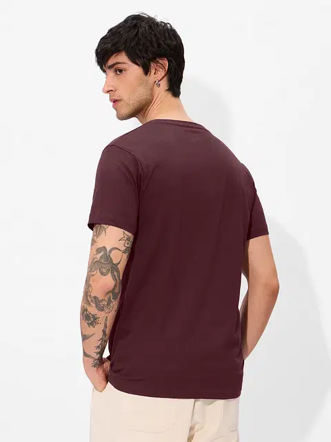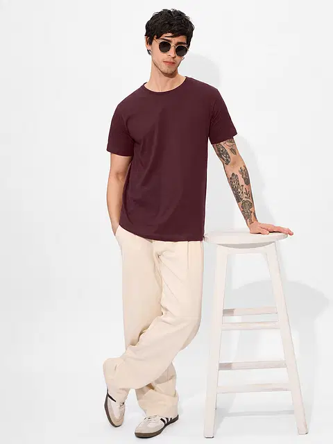 A versatile maroon t-shirt with a clean look and comfortable fit — perfect for everyday wear and effortless style.