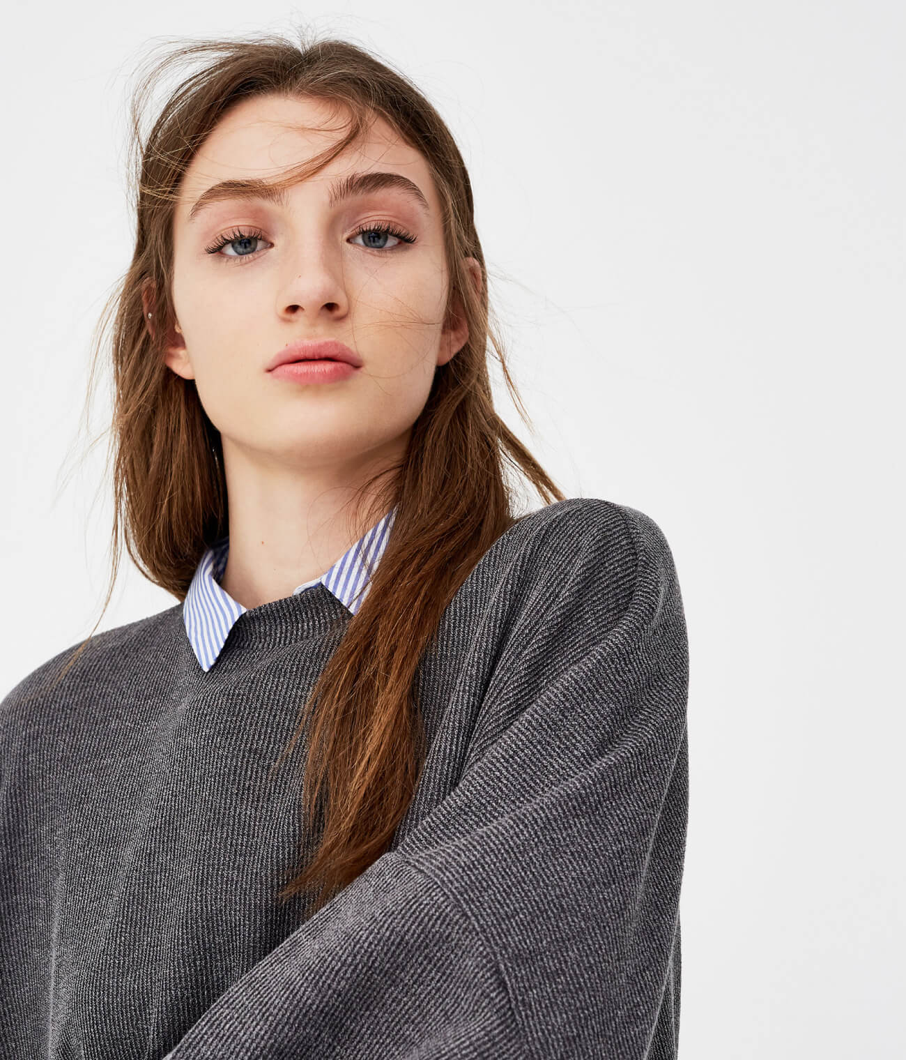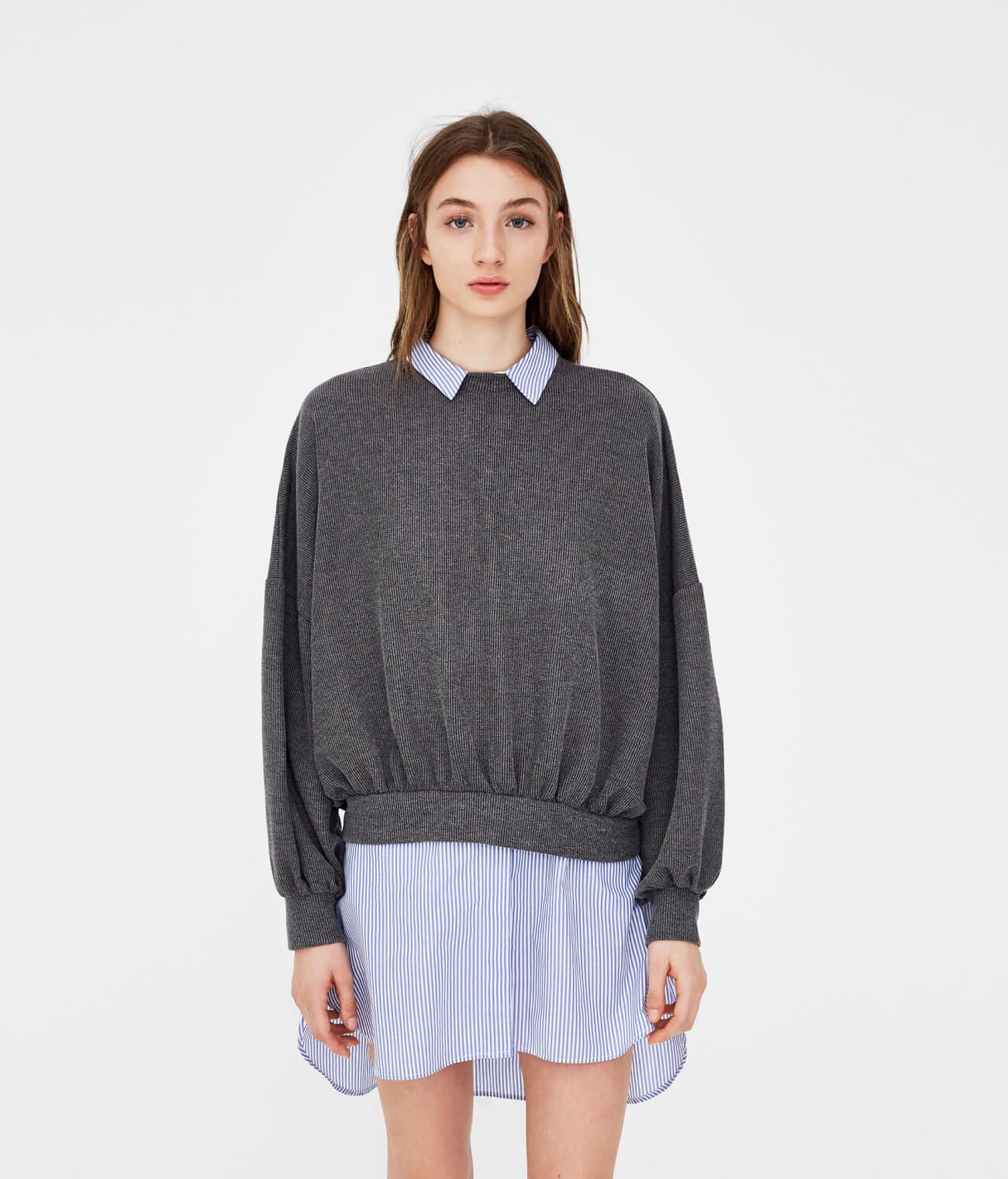 Built-in layered look with shirt and sweater