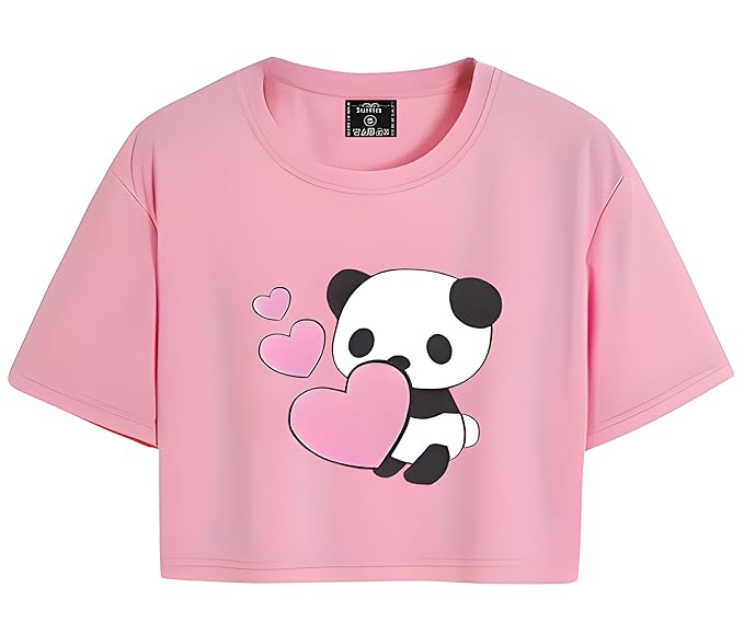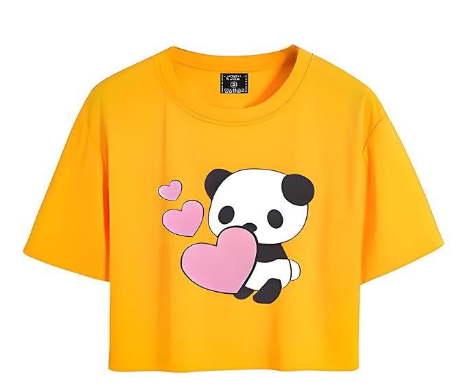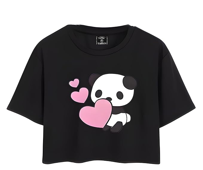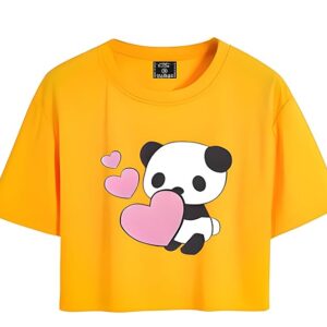 Show off your playful side with the Women’s Oversized Panda Heart Graphic Crop Top. Designed for fun and comfort, this trendy crop tee features a cute cartoon panda holding a big heart with two floating hearts beside it. Perfect for casual outings, hangouts, or lounging around, this top is a must-have for anyone who loves adorable fashion.