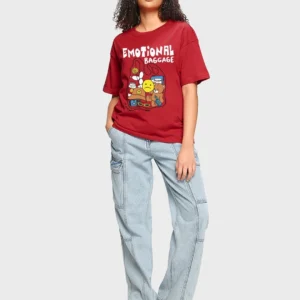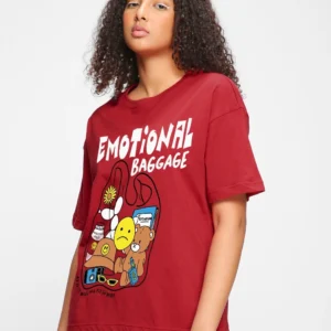 A bold and playful oversized t-shirt with a fun “Emotional Baggage” print — perfect for expressing your mood in style.